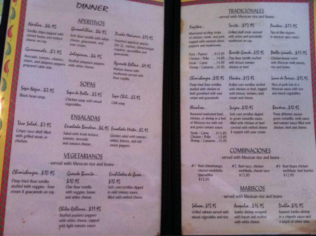 fiesta mexicana menu