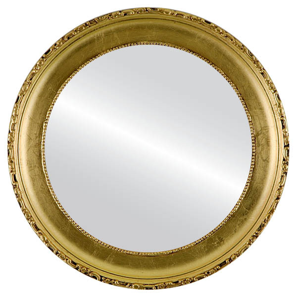 gold framed round mirror