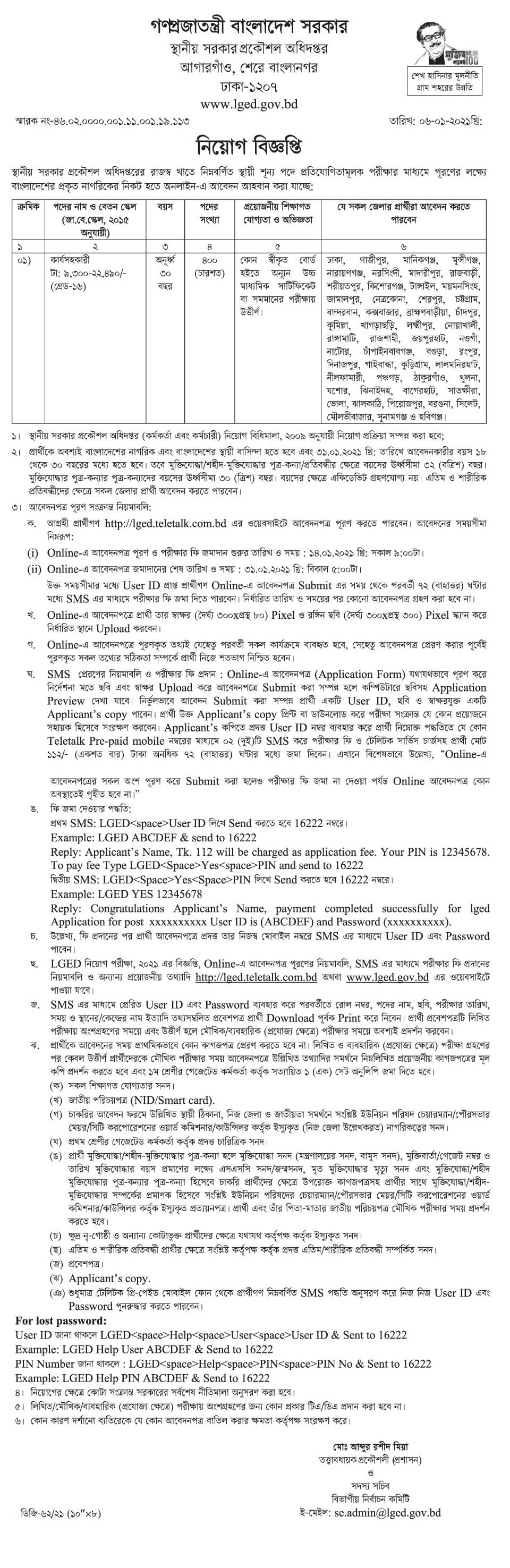lged job circular