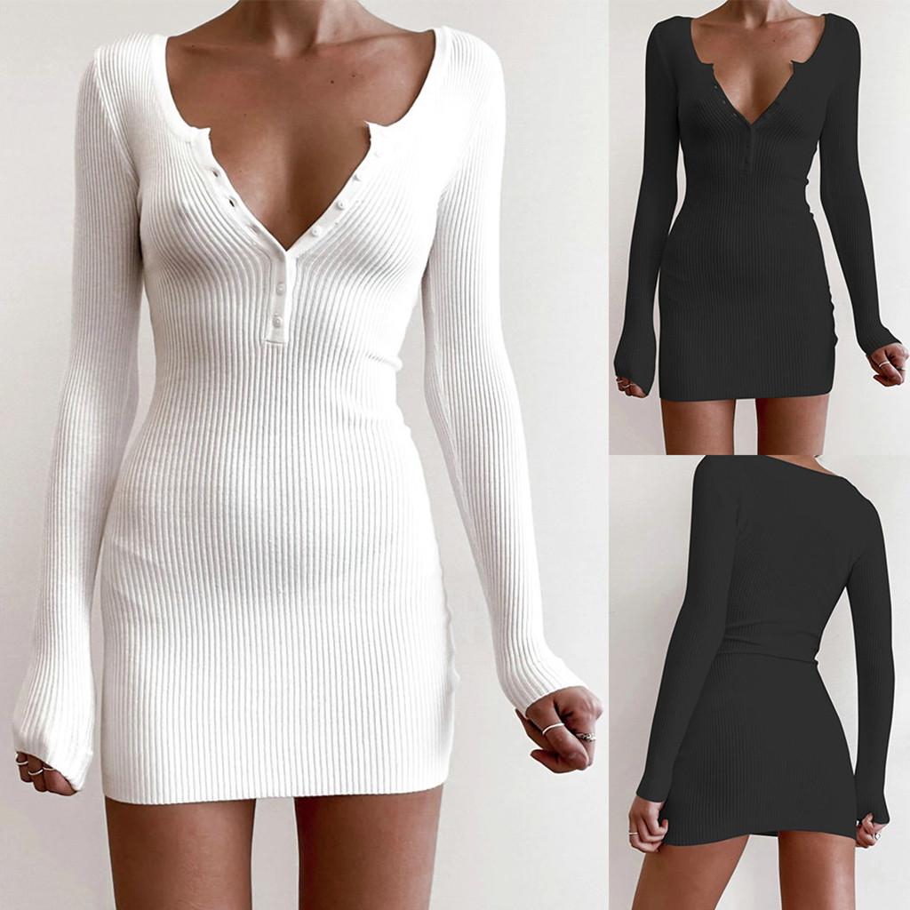 long sleeve v neck dress