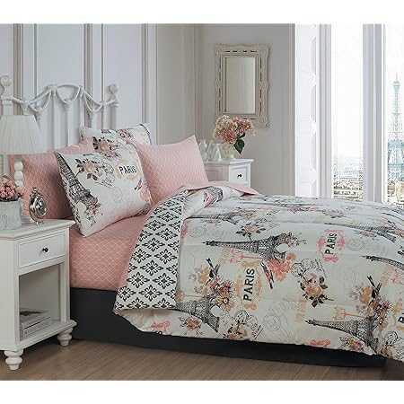 mainstays queen paris print bed in a bag bedding