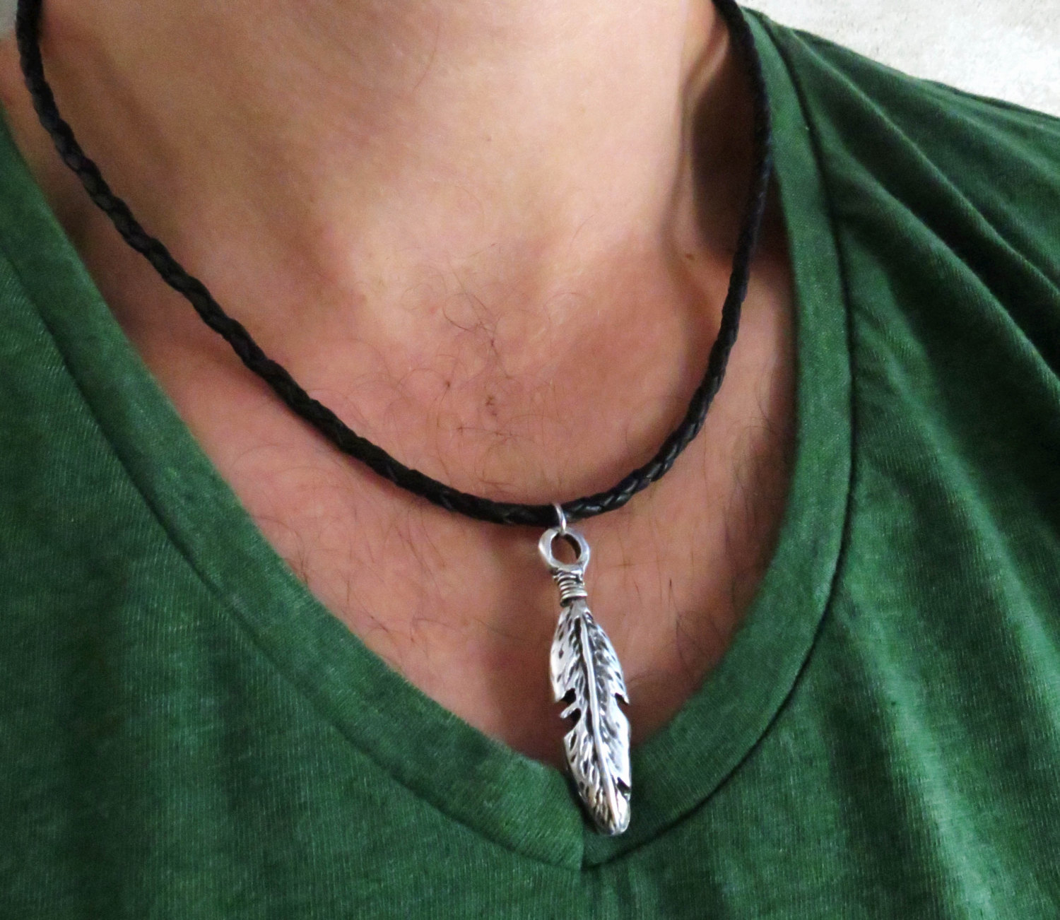 men feather necklace