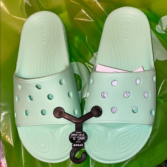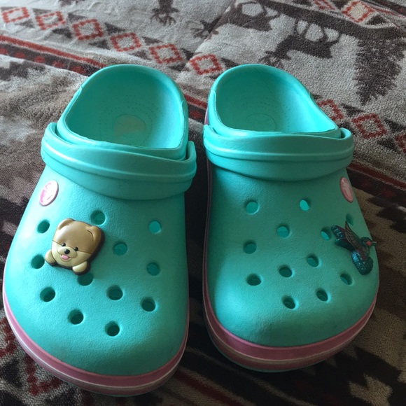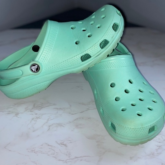 mint green crocs