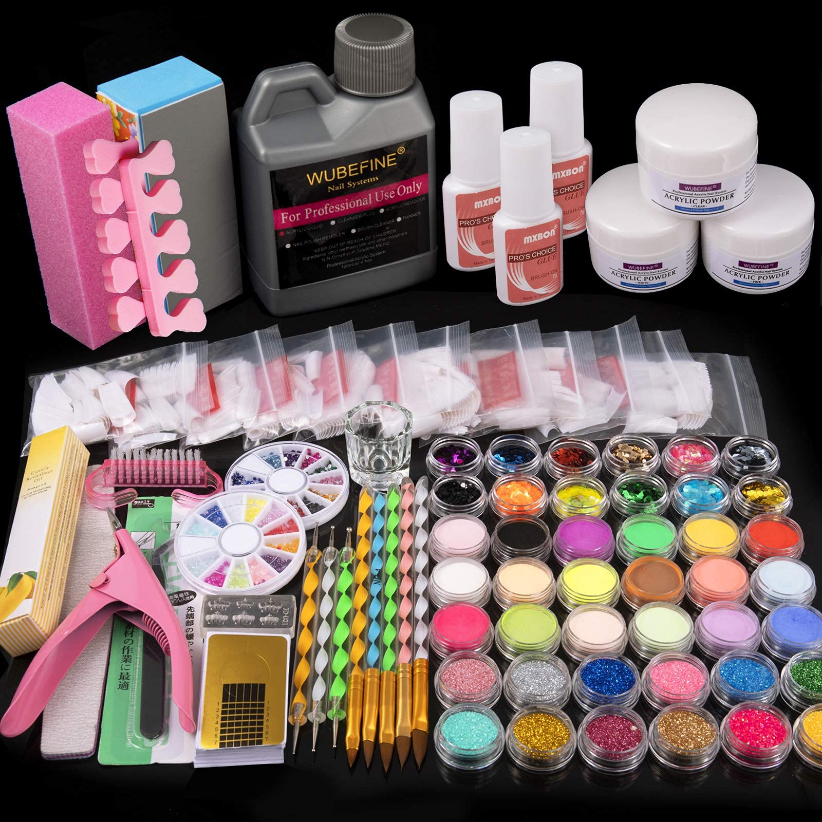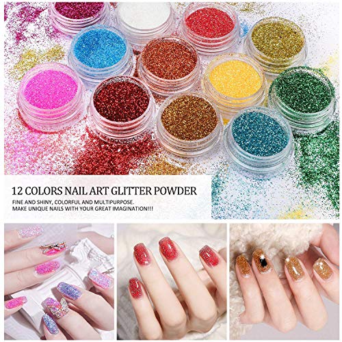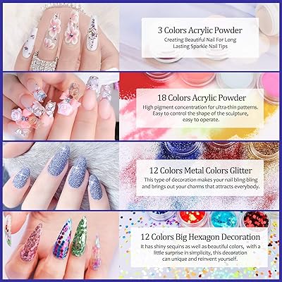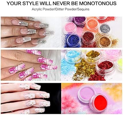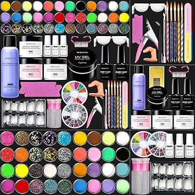 morovan 12 glitter acrylic powder kit nail art tips gel polish nail kit
