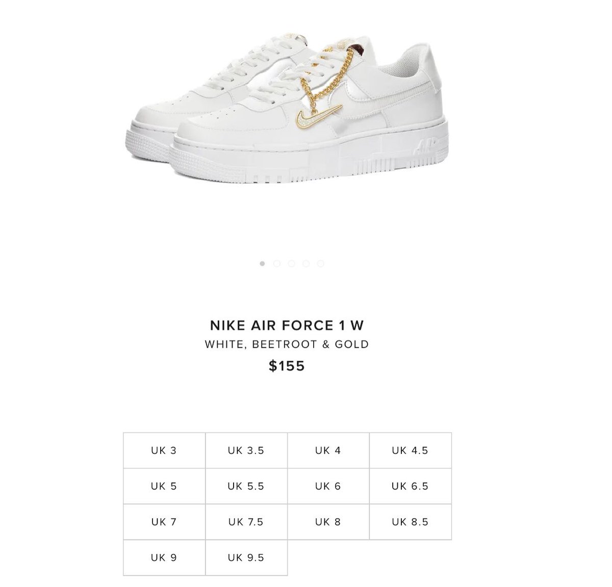 nike air force 1 pixel white gold chain
