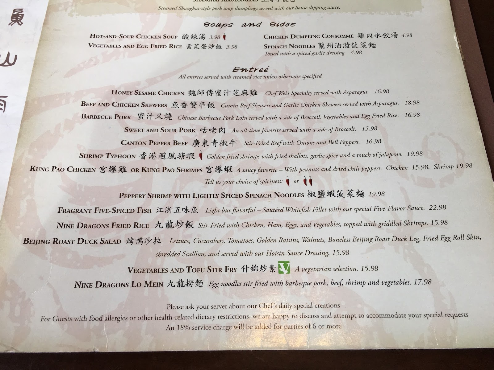 nine dragons menu