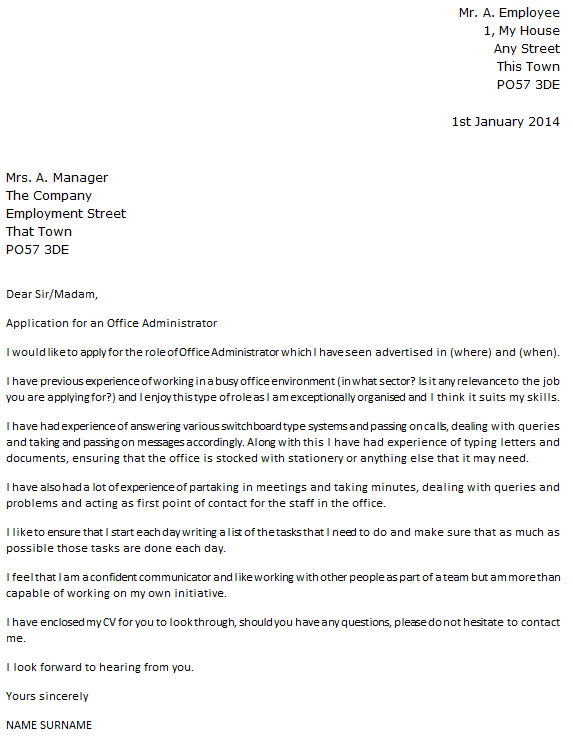 office administrator cover letter