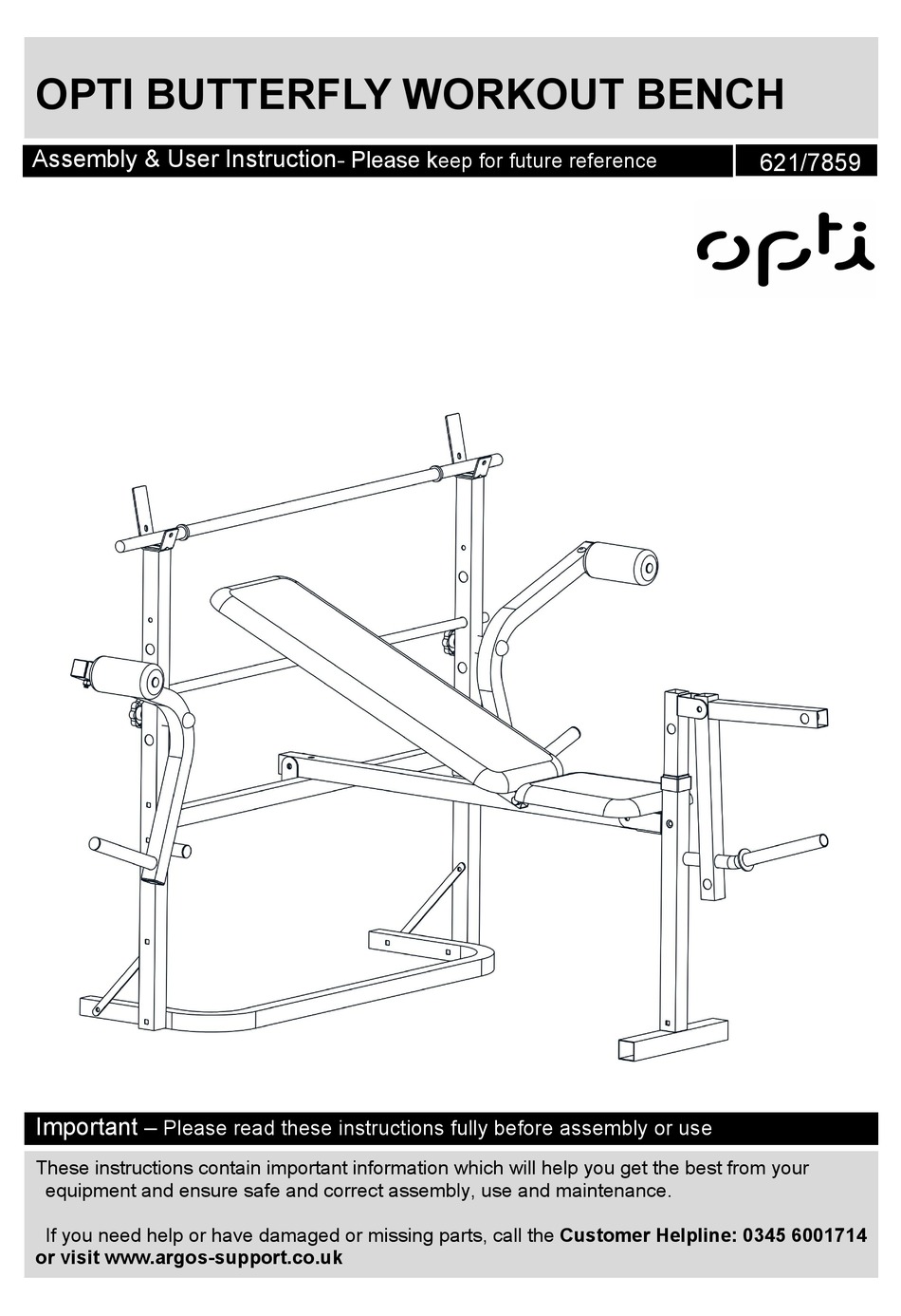 • opti butterfly workout bench