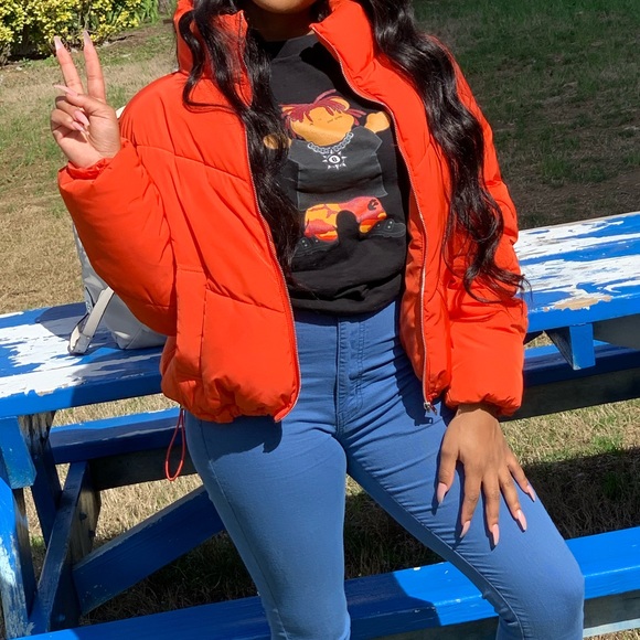 orange bubble coat