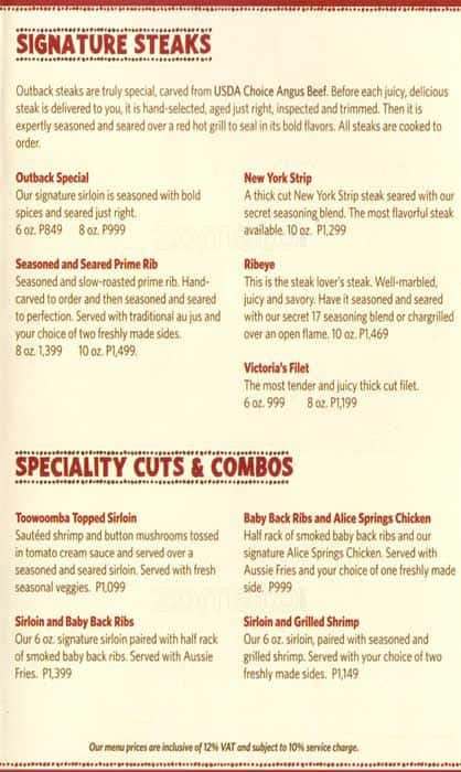 outback steakhouse prices