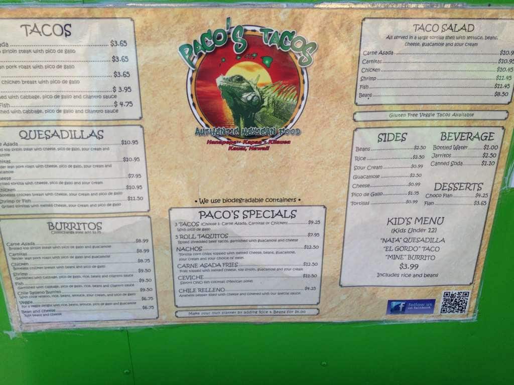 paco's tacos menu