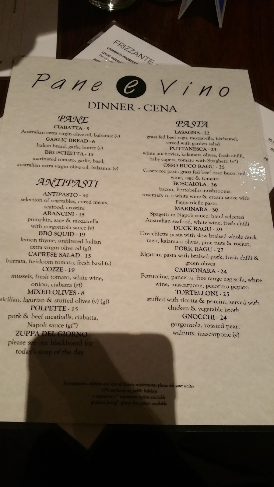 pane e vino menu