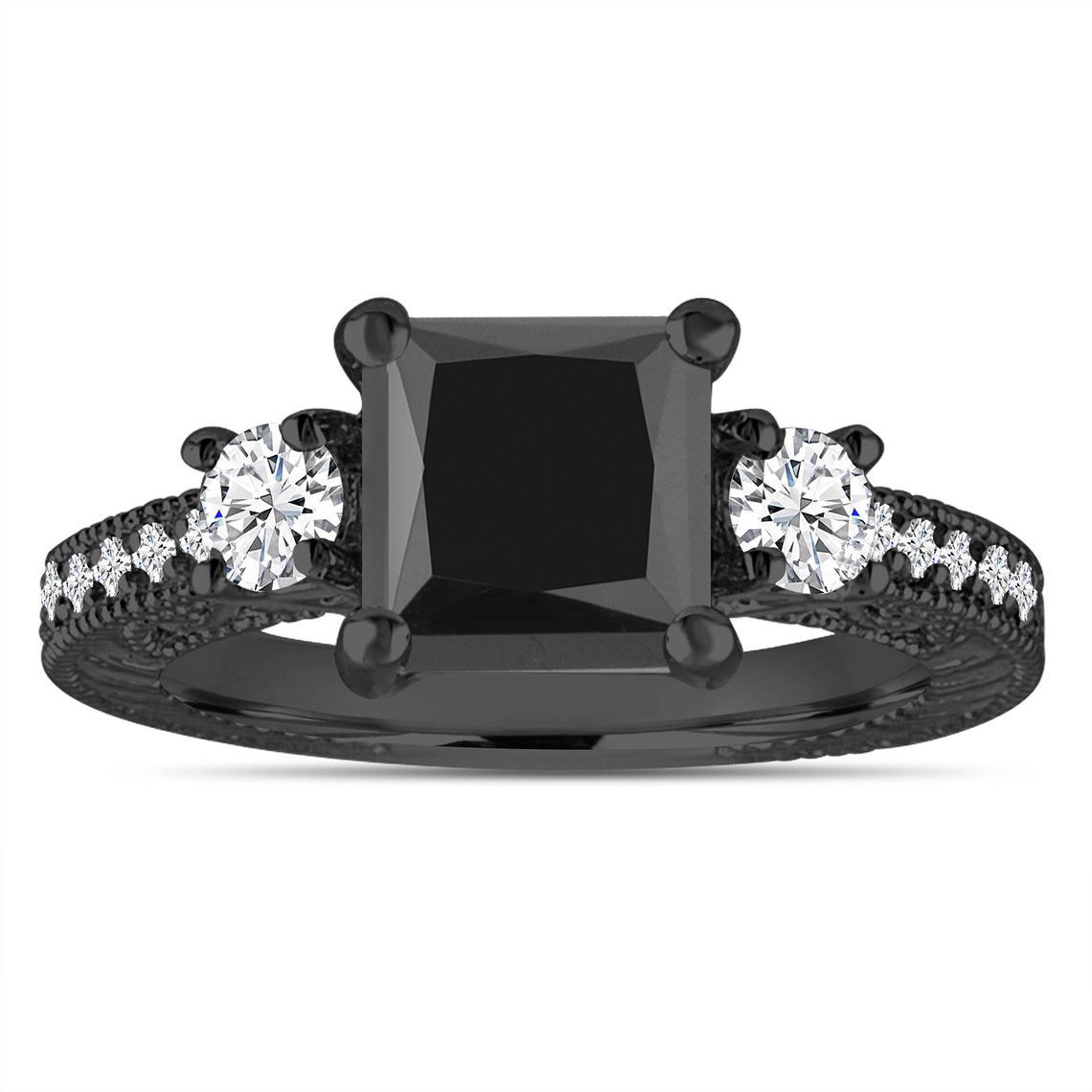 princess cut black diamond ring