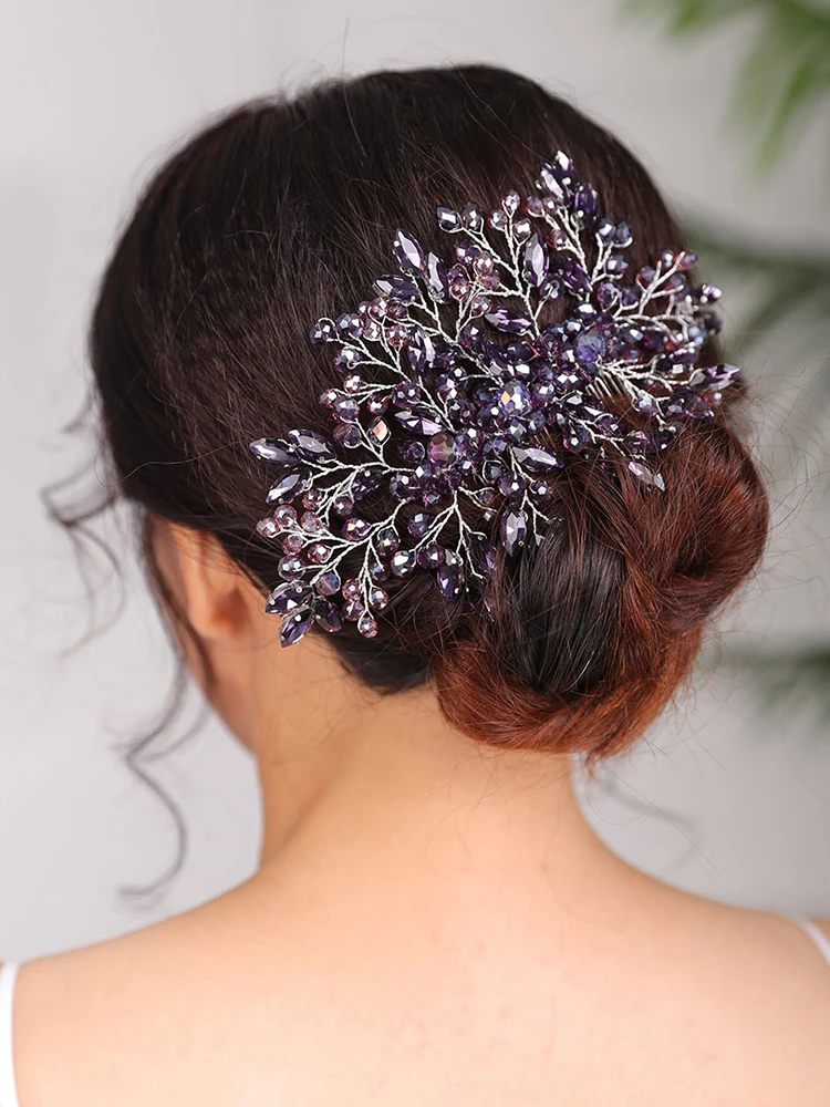purple bridal hair comb