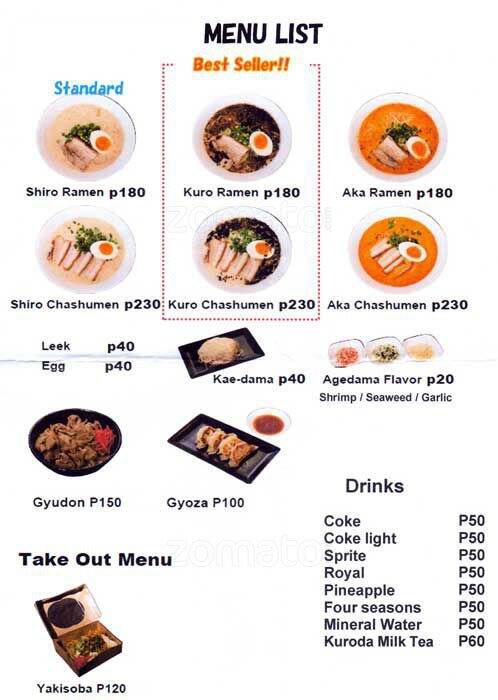 ramen kuroda menu
