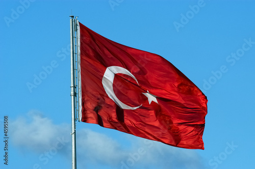 red flag with white moon and star