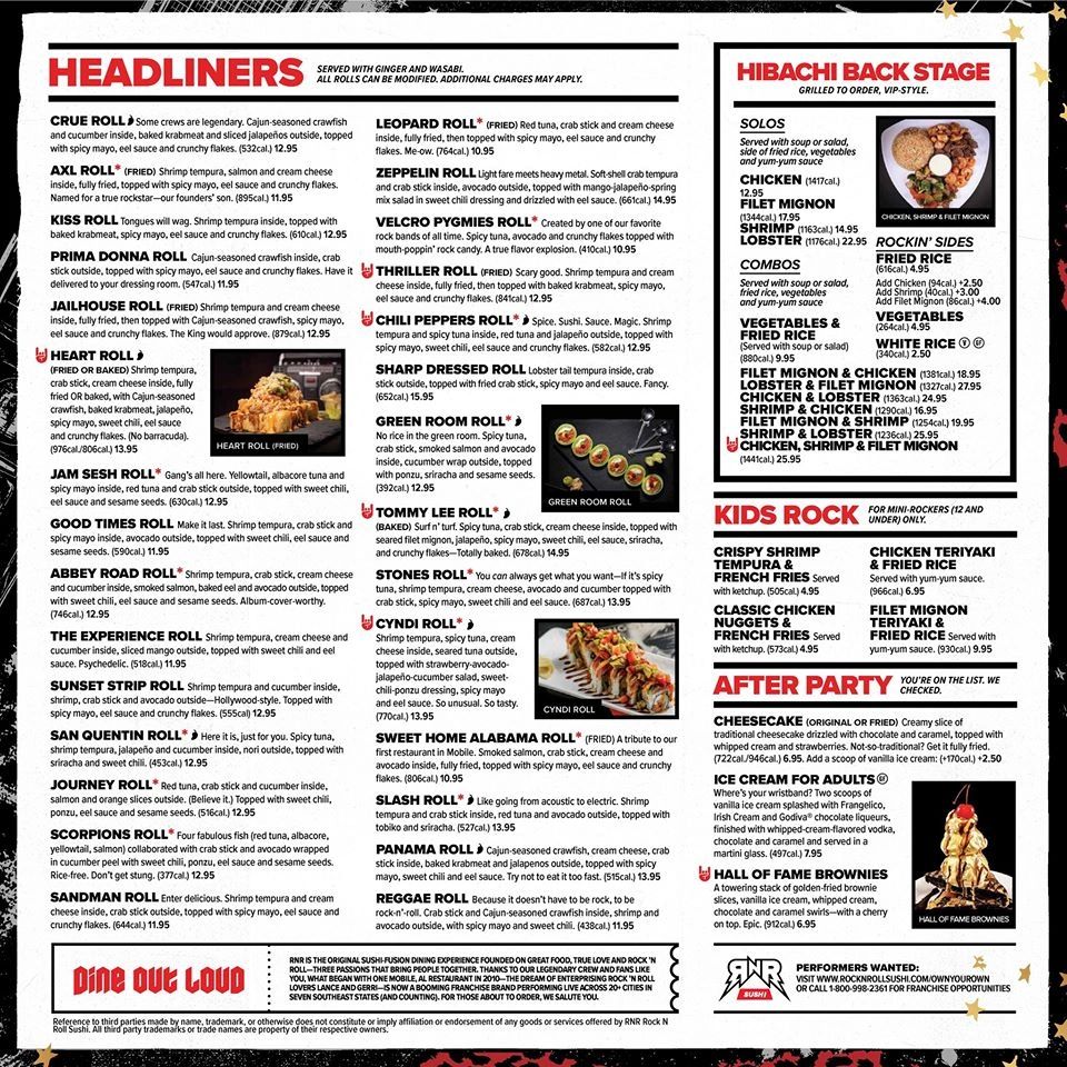 rock n roll sushi menu