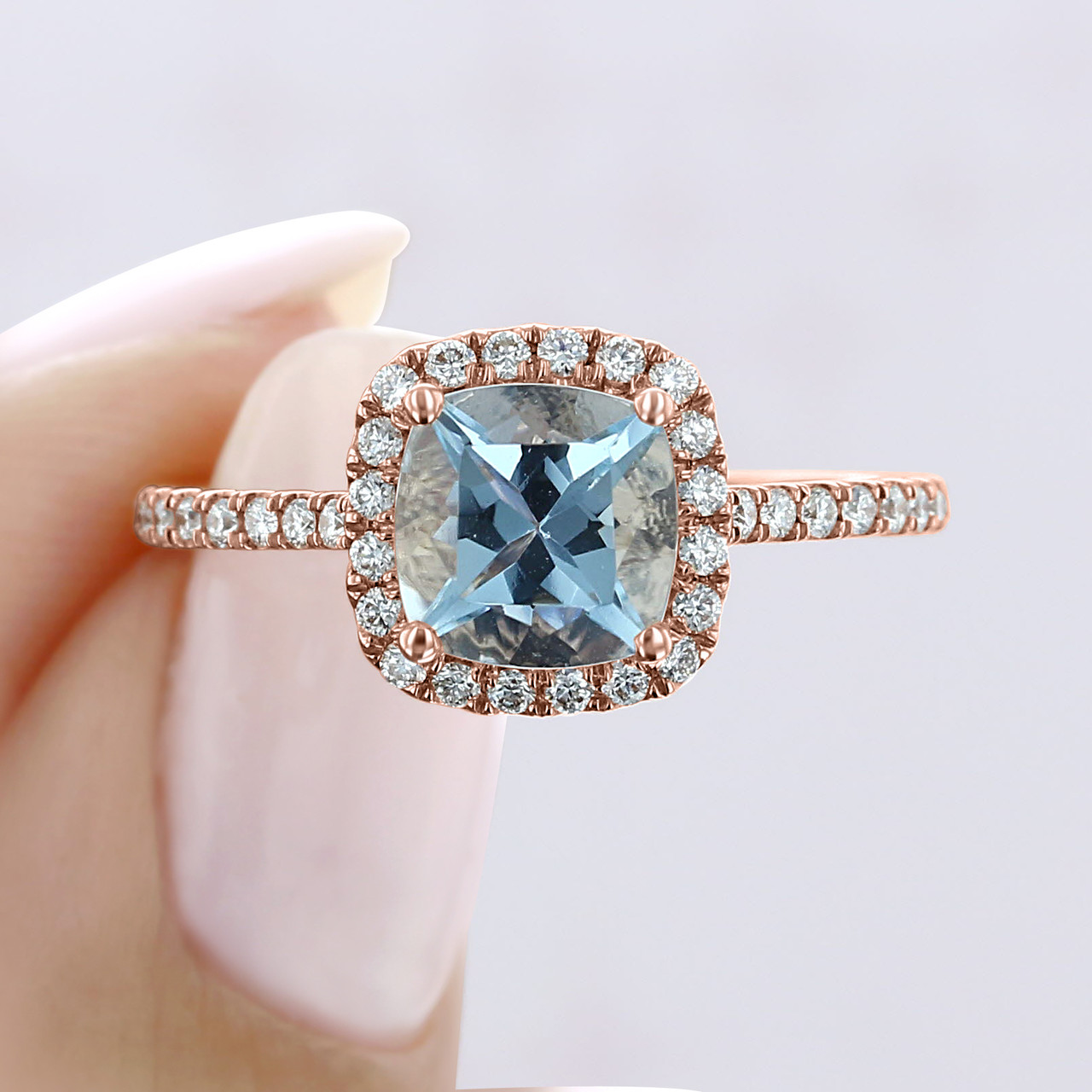 rose gold aquamarine rings