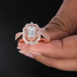 rose gold engagement ring emerald cut