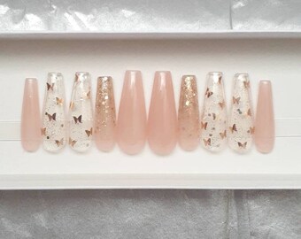 rose gold glitter acrylic nails