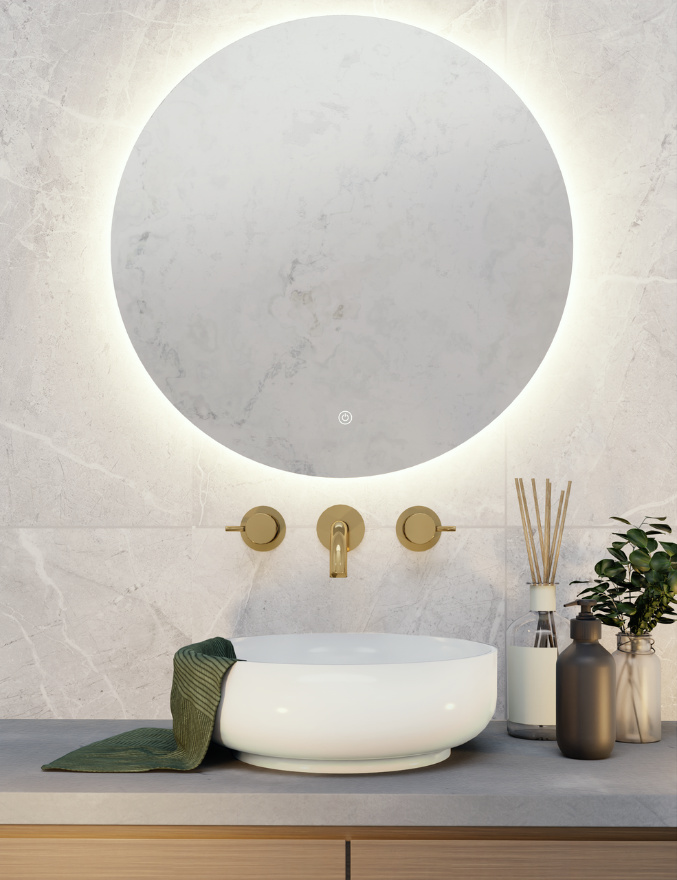 round mirror with light