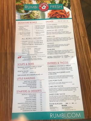 rumbi menu
