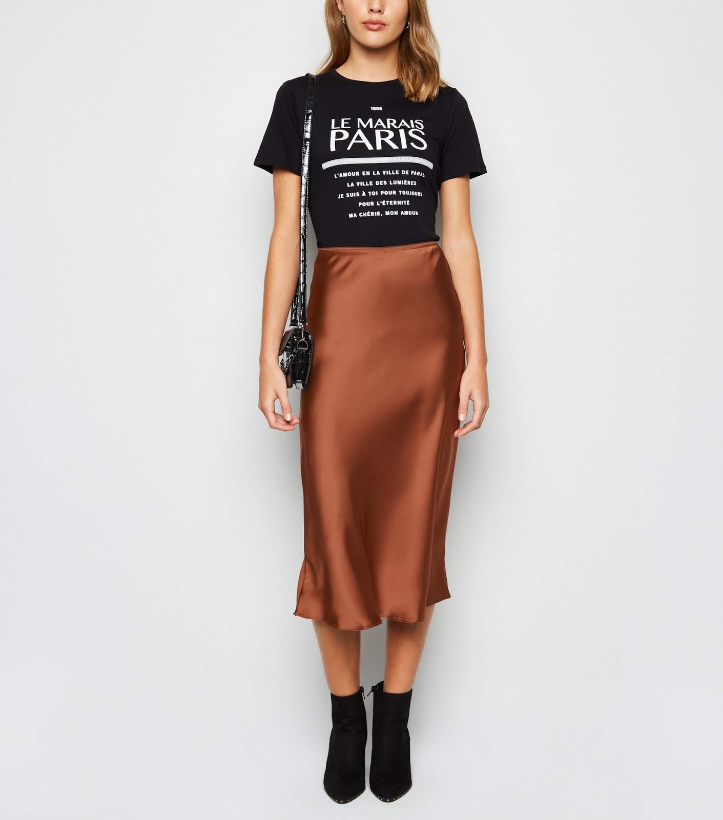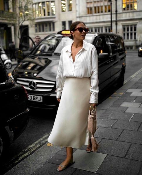 satin skirt outfit