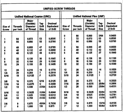 screw number sizes