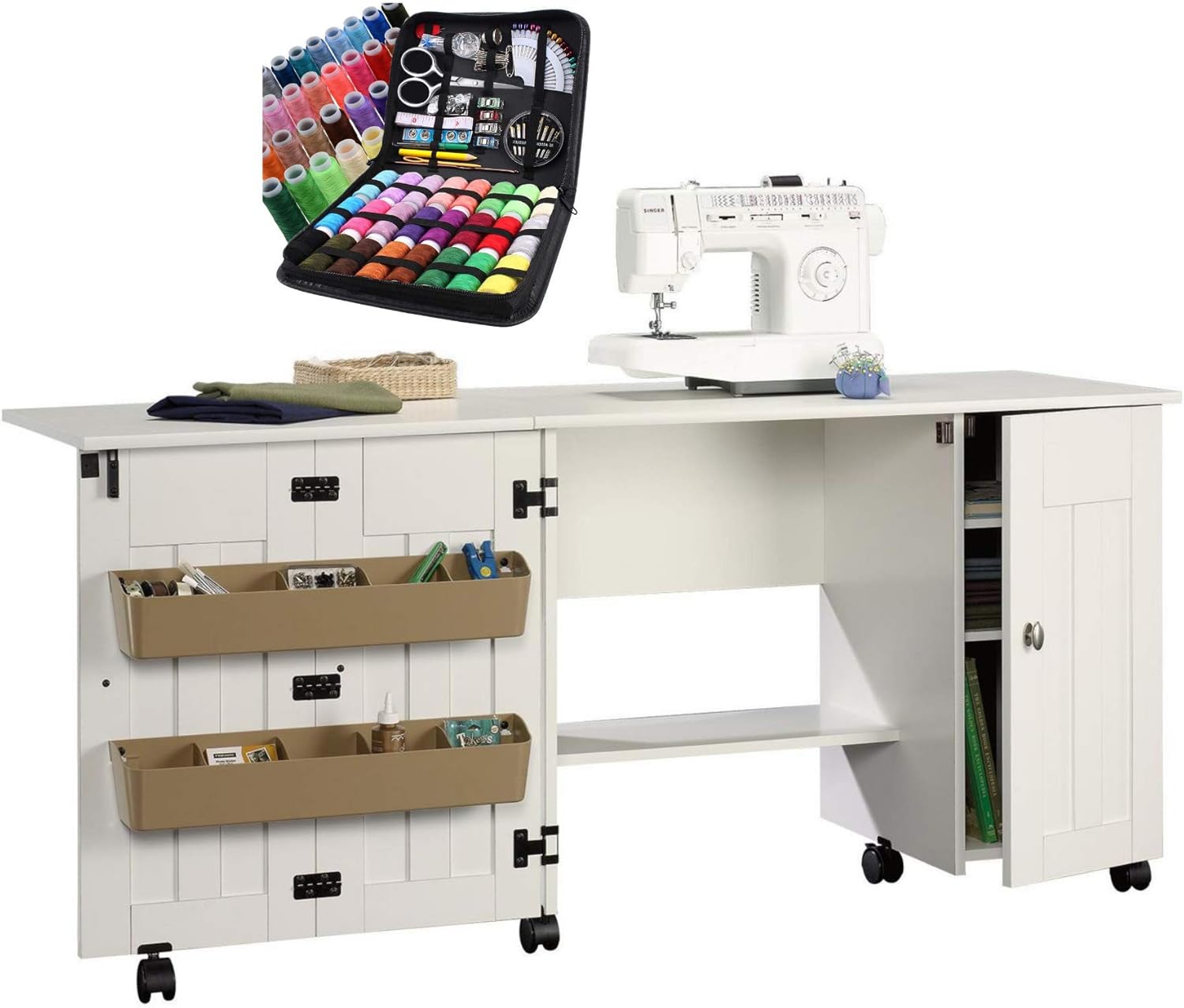 sewing cabinet with fold out table