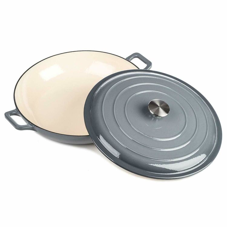 shallow cast iron casserole dish
