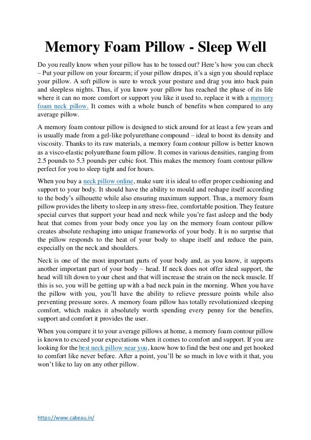 sleepwell memory foam pillow