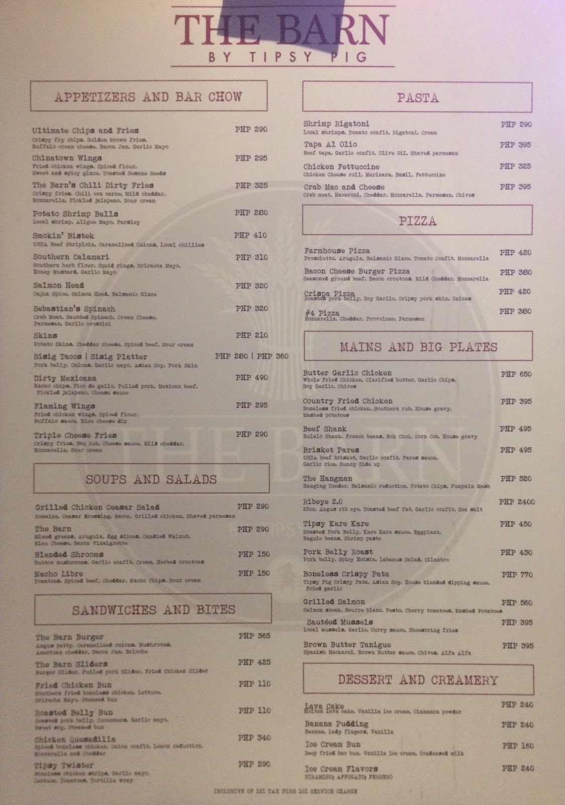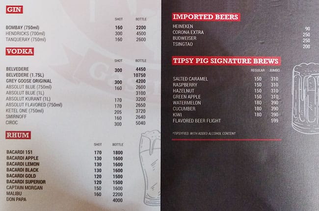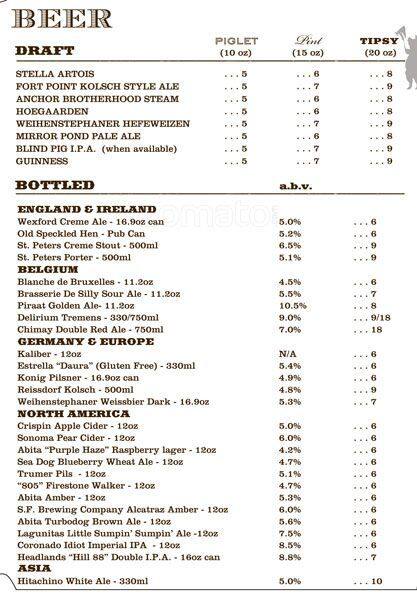 tipsy pig menu