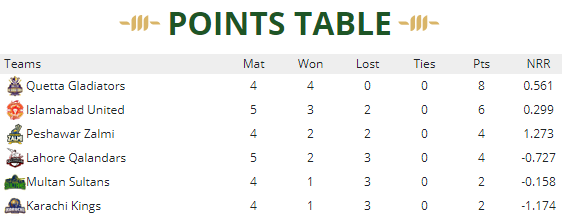today psl match result