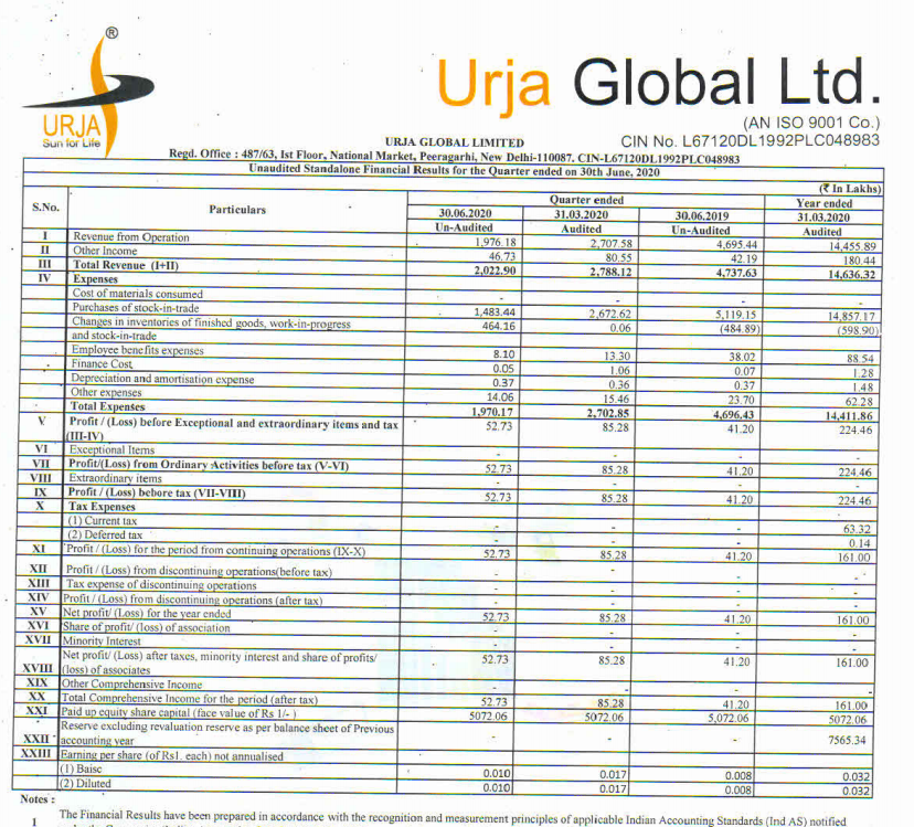 urja global stock price