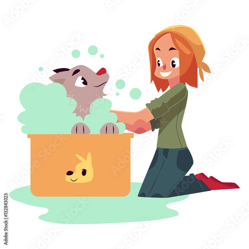 washing a puppy