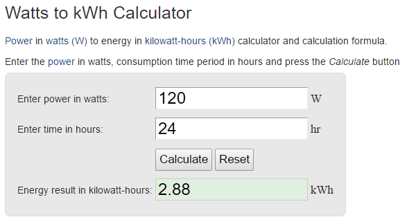 watts to kwh calculator