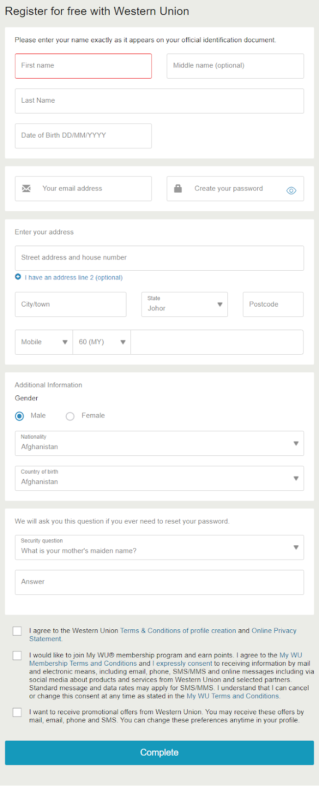 western union online money transfer