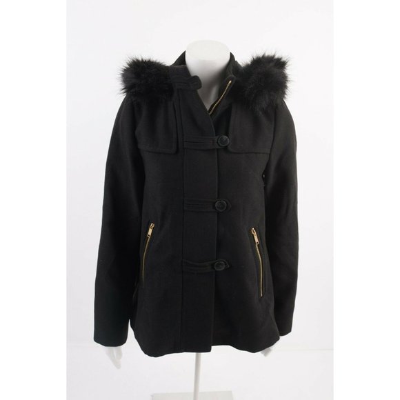 womens black coats with fur hood