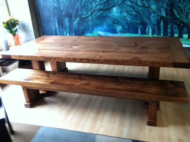 wooden table and benches