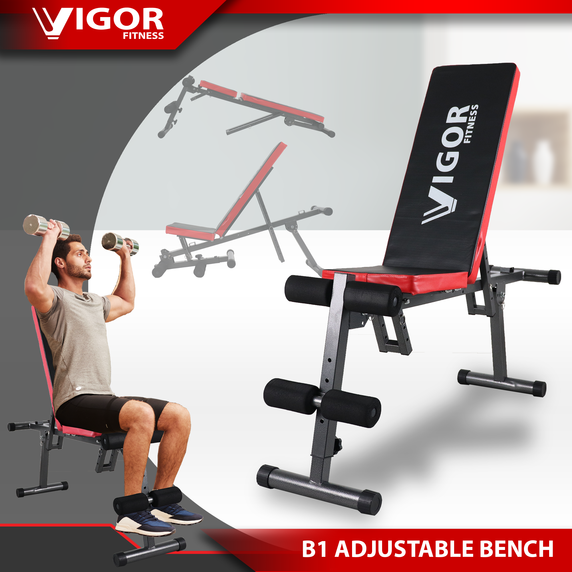 workout bench and dumbbells