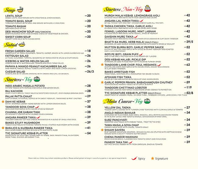 yellow chilli menu
