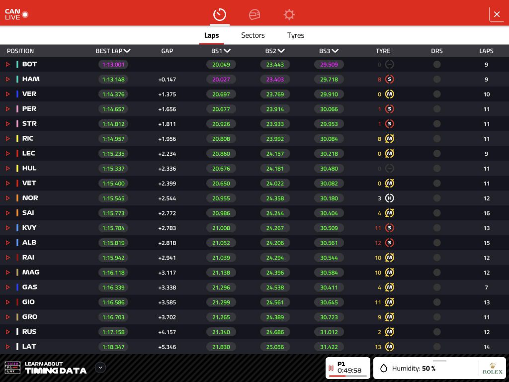 classifica f1 live