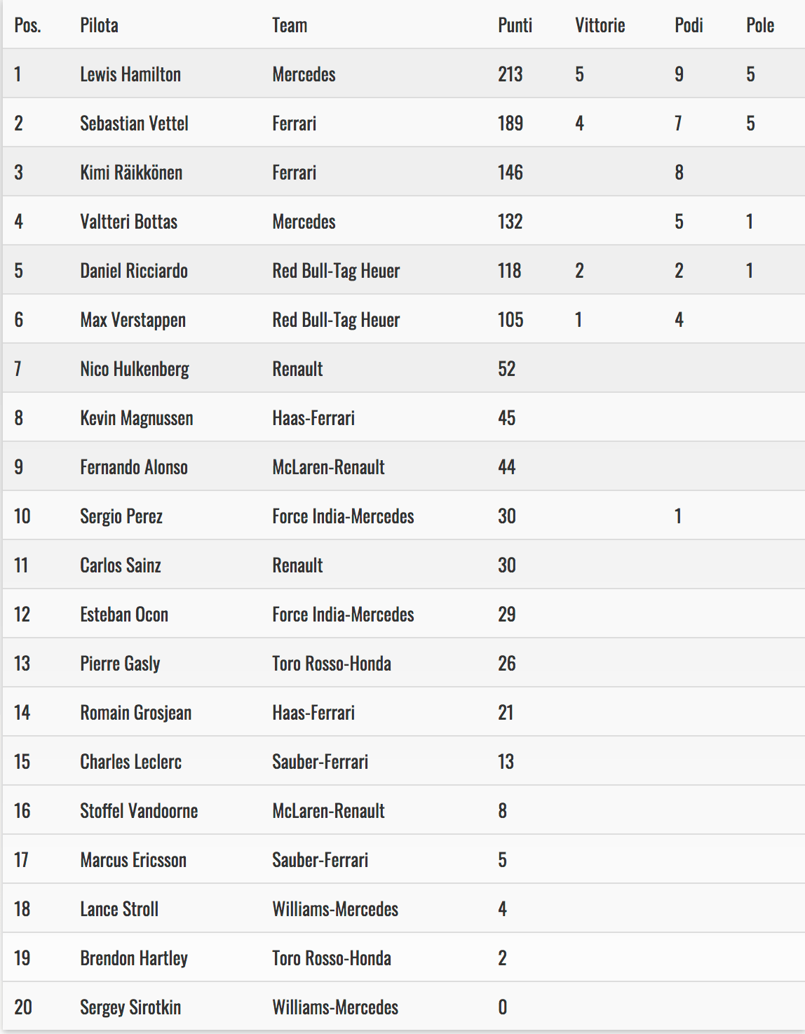 classifica piloti f1 2014