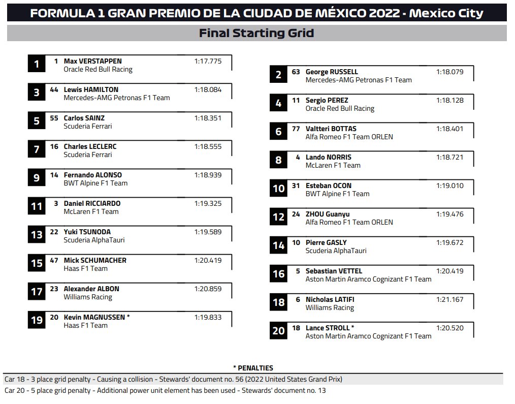 f1 2022 griglia di partenza