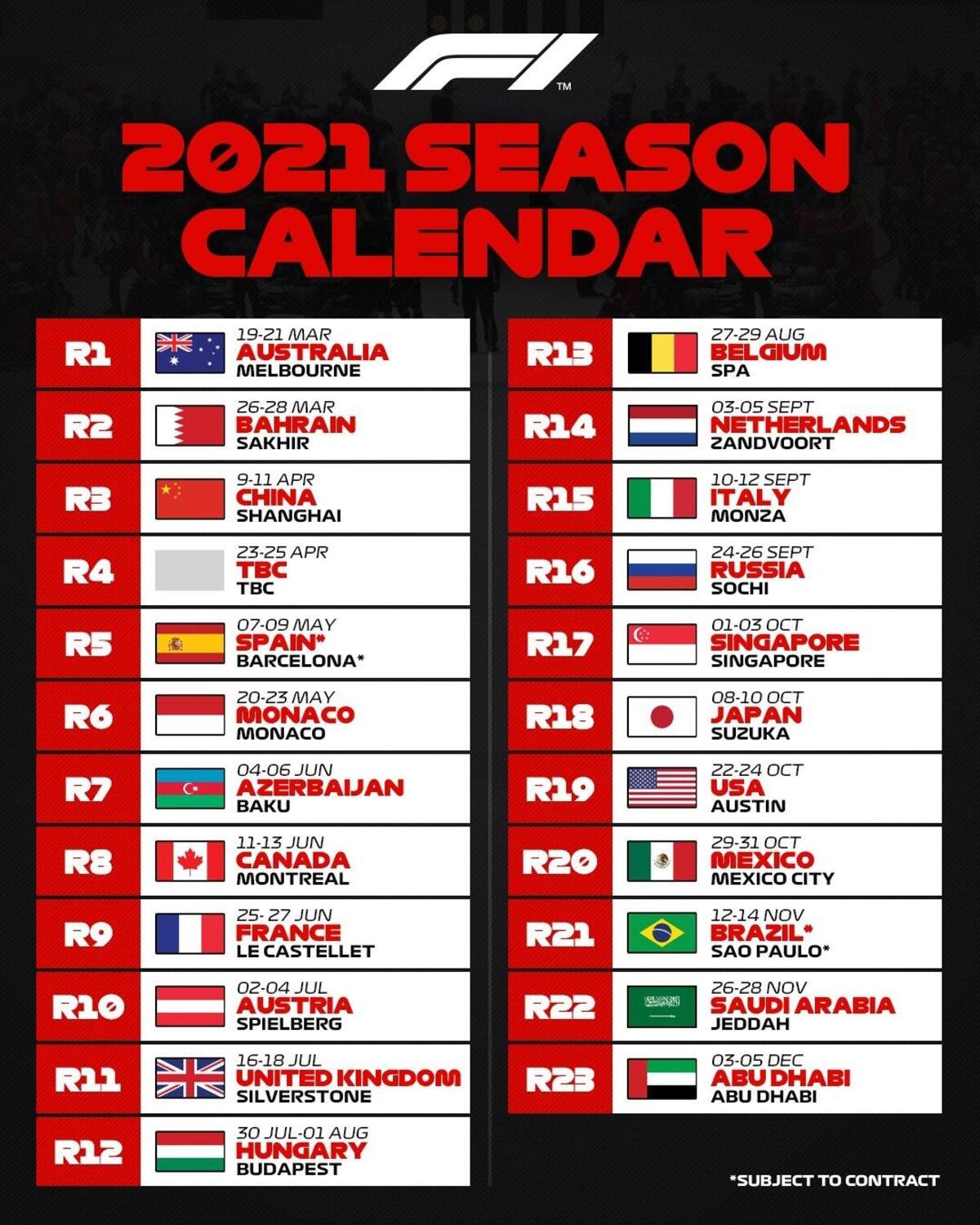 gare f1 2021 calendario