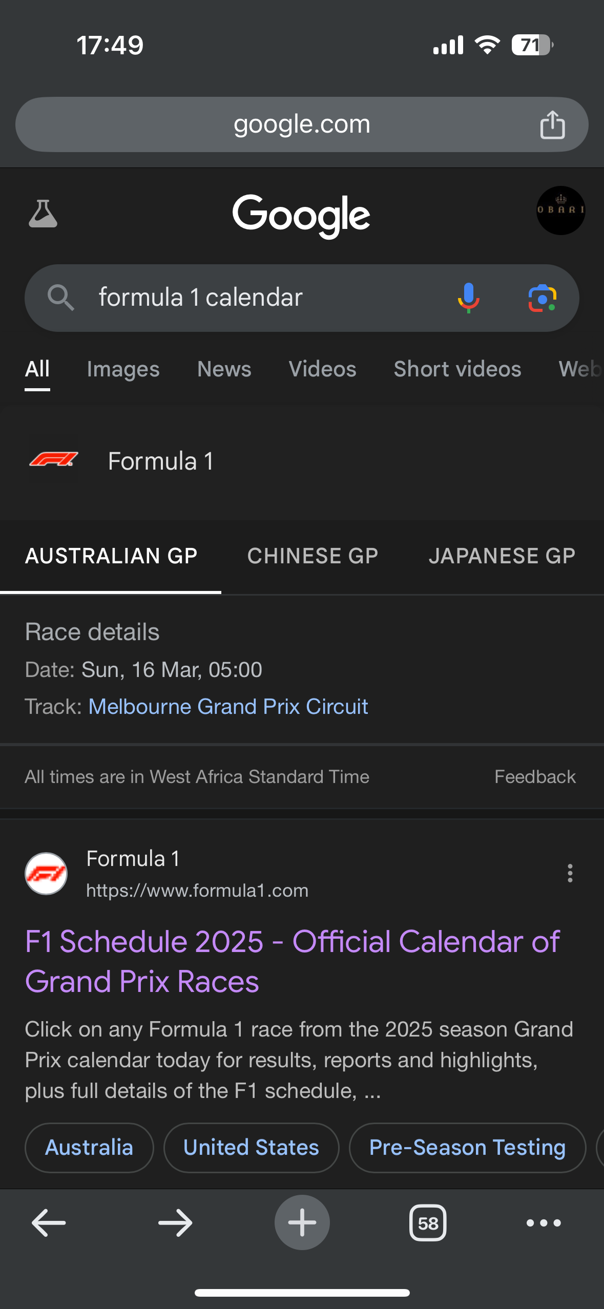 google calendar f1