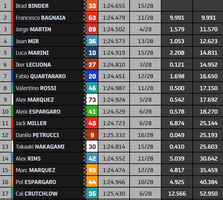 ordine di arrivo moto 2