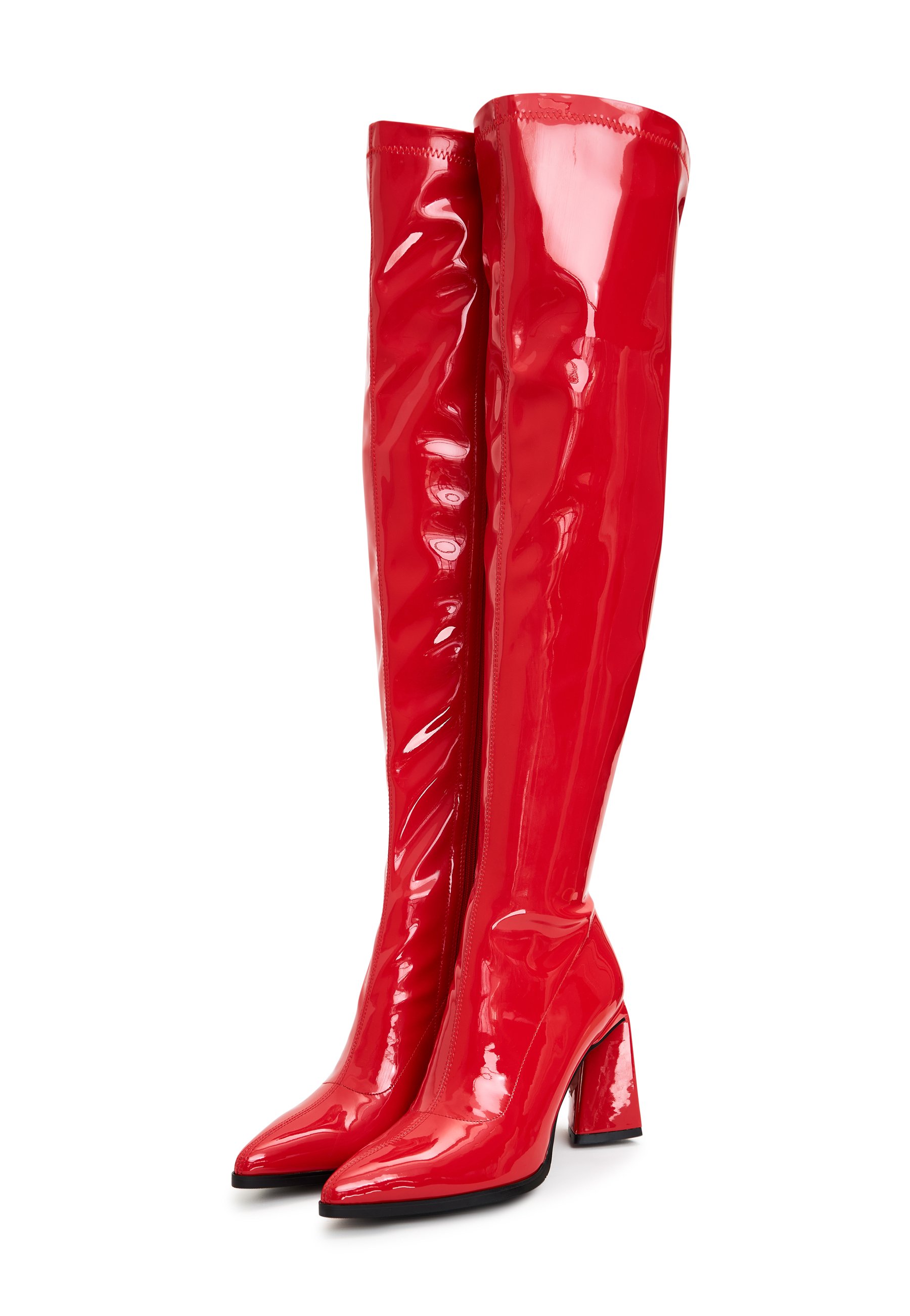 stivali rossi sopra il ginocchio