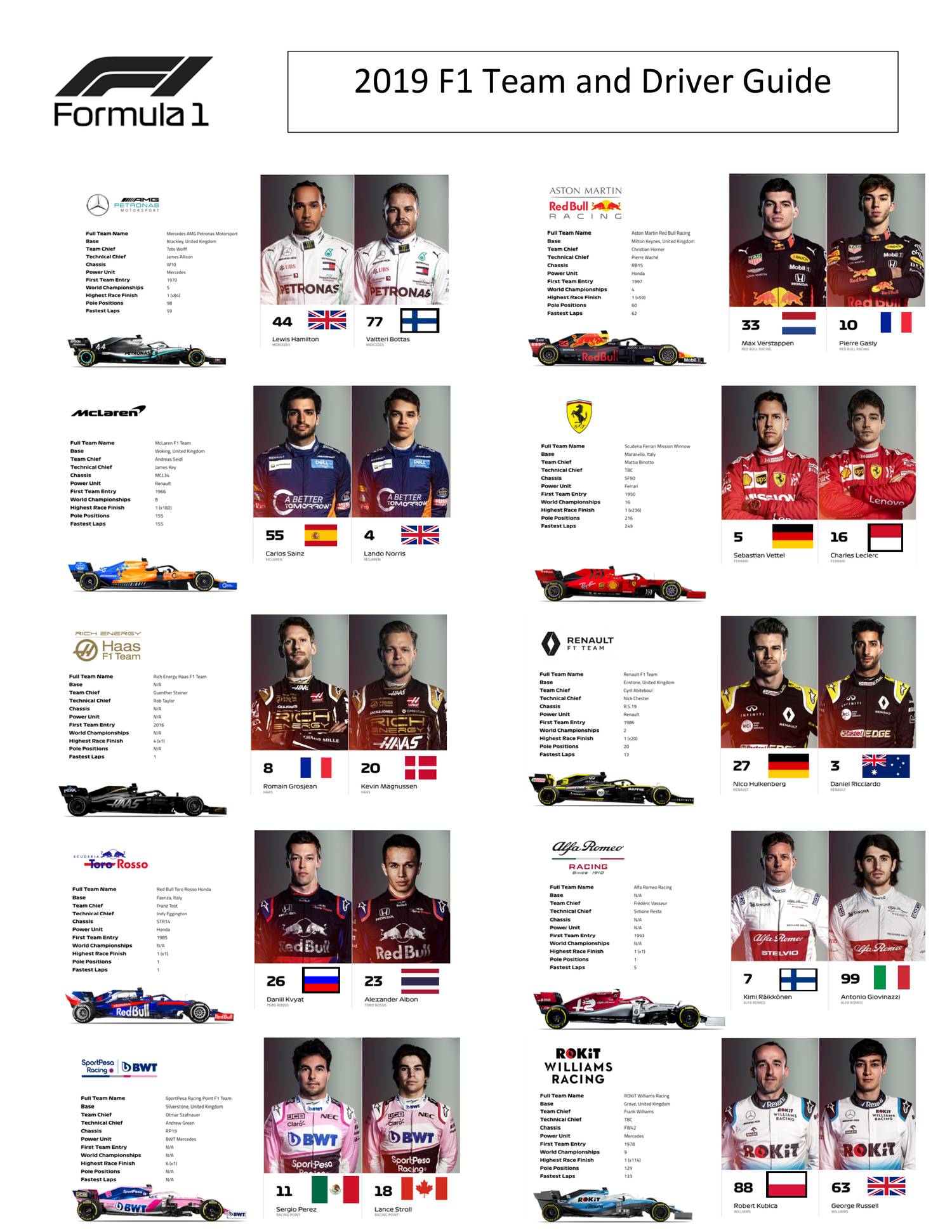 teams f1 2019