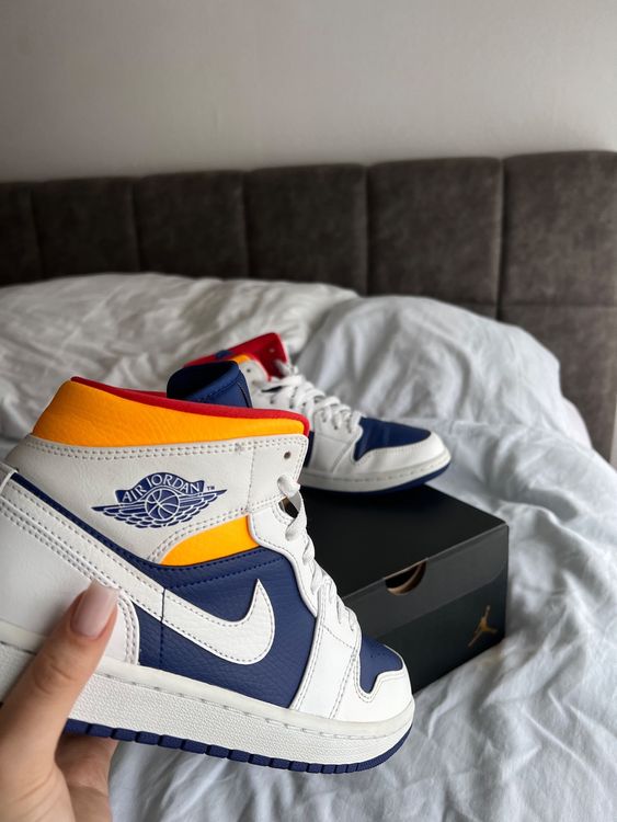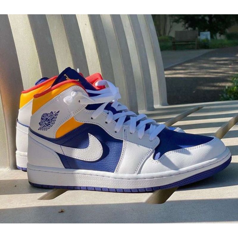 jordan 1 mid white laser orange deep royal blue courir
